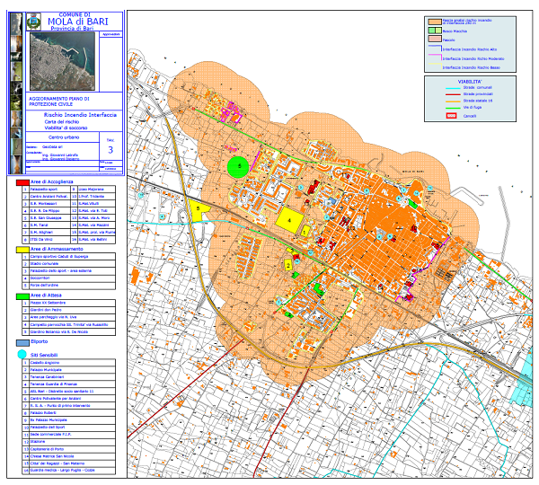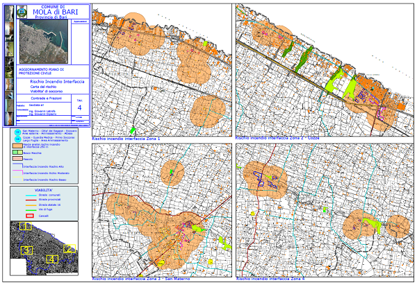 Seguendo le direttive predisposte dalla Presidenza del Consiglio dei Ministri, Capo del Dipartimento della Protezione Civile, ai sensi dell’O.P.C.M. 28 agosto 2007, n.3606, si sono approntate le tavole grafiche, allegate al presente piano, relative alla perimetrazione delle aree di interfaccia del Comune di Mola di Bari, alla vulnerabilità e alla pericolosità insita nel territorio e alle zone a rischio incendio.